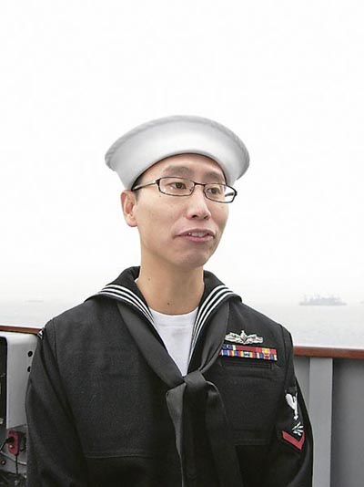91年移居美國的吳兆華,現(xiàn)時是藍(lán)嶺號上的三等海軍士官,今次是第四次隨藍(lán)嶺號訪港。(明報圖)