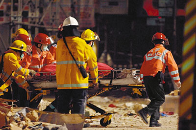 紅磡馬頭圍道舊樓倒塌意外發(fā)生后,消防人員展開(kāi)逾二十小時(shí)的搜救行動(dòng)昨晨結(jié)束,證實(shí)事件釀成四死二傷。為防止慘劇重演,香港發(fā)展局旋即成立四十支專業(yè)隊(duì)伍,明日起巡查全港四千幢逾五十年樓齡的樓宇結(jié)構(gòu)安全,將于一個(gè)月內(nèi)完成巡查,并對(duì)有實(shí)時(shí)危險(xiǎn)的樓宇進(jìn)行緊急維修及鞏固工程。發(fā)展局局長(zhǎng)林鄭月娥表示,港府會(huì)從檢查樓宇結(jié)構(gòu)、取樣化驗(yàn)及向目擊者索取資料等方向,追查塌樓原因,并研究加快推展驗(yàn)樓及驗(yàn)窗的立法工作。