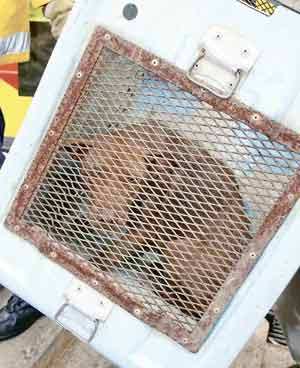 捉狗隊(duì)員見(jiàn)事敗,即向消防處求助,大批消防員趕到場(chǎng),而愛(ài)護(hù)動(dòng)物協(xié)會(huì)亦有派員趕到。由于跳海逃走的唐狗游出離岸300多公尺遠(yuǎn)的躉船,消防安排船只到場(chǎng)接載捉狗隊(duì)出海,再轉(zhuǎn)乘橡皮艇接近躉船船身,擾攘個(gè)多小時(shí),雖然唐狗曾再度跳海,但被捉狗隊(duì)員的捉狗索套緊頸項(xiàng)就逮,之后將其納入狗籠,乘船上岸,帶返九龍動(dòng)物管理中心接受檢驗(yàn)。