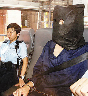 身高達6尺、身形瘦削、面容枯槁的被告24日被解上法院應訊,身穿深藍色工人服的被告在犯人檻內神情閃縮,木無表情。