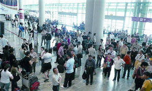 由于候機大樓內聚集的人數最多時達千人,加上大樓內座位不多,不少乘客只能席地而坐,機場餐廳擠滿食客。更有經澳門機場轉機的乘客為免浪費時間,索性將全團人的行李集中在一起,同行的幾個團友留守機場看守行李,其余團友則安排到市內游覽、購物。