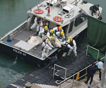 沉沒36天的烏克蘭補給船“Neftepaz-67”,日前被海上大力士“華天龍”號吊起后,搜索行動隨即展開。警方災難遇害者辨認小組近百成員,戴上防毒膠袍及口罩,配備手提電腦及大批搜索工具,聚集大欖水警基地,由多艘小艇送往大小磨刀洲現(xiàn)場,由28日凌晨搜索至28日晚上9時。