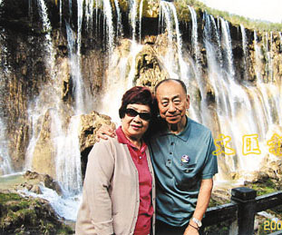 大難脫險的吳天賜,日前與福建鄉(xiāng)親聚會并親述地震經(jīng)歷。吳稱,5月12日上午,一行人仍游覽風景美麗的九寨溝,兩夫婦在珍珠灘下拍下一幅照片。下午當他們到九寨溝文俗文化村購物時,突感地動山搖,文化村的牌樓搖搖欲墜,遠處天空沙塵滾滾。港游客紛逃入酒店躲避。