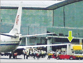 8日上午11時53分,客機(jī)降落后預(yù)備泊進(jìn)34號停泊位,其間右邊機(jī)翼末端撞及旁邊運(yùn)送物資工程貨車的車頂,傳出巨響。目擊者稱,機(jī)翼與貨車車頂擦撞范圍有2至3尺,眾人恐怕意外引發(fā)機(jī)翼和機(jī)肚油缸爆炸,貨車司機(jī)立即跳車狂奔。多個部門人員聞訊紛紛趕至,疏散飛機(jī)上近百人,氣氛一度緊張。