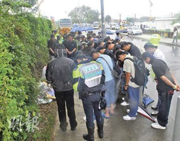 蘇志豪的親友11日到殮房認(rèn)尸后,與其同事分乘兩架旅游大巴,一行逾百人到出事現(xiàn)場致祭。部分女親友表現(xiàn)激動,不斷流淚,要由旁人攙扶安慰,場面哀傷。