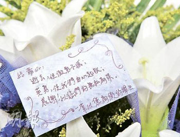 一群曾經(jīng)由殉職消防隊員蕭永方訓練的消防學員,獻上鮮花及寫有“逝去但傲氣不滅”等字句的心意卡,向蕭永方致敬及表示懷念。(圖片來源:明報)