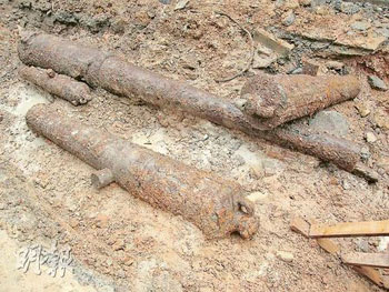 中新網(wǎng)9月19日電 據(jù)香港明報(bào)報(bào)道,香港金鐘英國駐香港總領(lǐng)事館對(duì)面地盤,挖出4支共重3噸的生銹大炮。爆炸品處理課人員檢查后,證實(shí)為沒有殺傷力的戰(zhàn)前古炮。