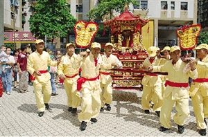 澳門媽祖文化節(jié)活動由澳門中華媽祖基金會主辦,其中天后宮媽祖駐駕、巡游祈福活動6日上午9時舉行,湄洲媽祖金身從媽祖文化村天后宮起駕至佑漢公園,并聯(lián)同來自內(nèi)地、臺灣及東南亞等地區(qū)的代表、表演隊伍經(jīng)筷子基、臺山、佑漢一帶巡游,讓信眾參拜,并安排各項福建民俗文藝表演。大批信眾、街坊沿途圍觀,場面熱鬧。