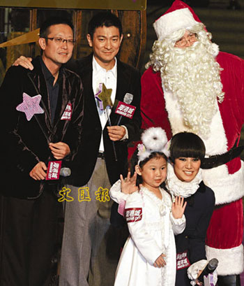 金融海嘯影響香港市道,但圣誕燈飾亮起添了幾分燦爛繽紛,華仔也在一顆星星飾物之上寫上“幸!倍,祝愿香港人永遠都活得幸福。何韻詩都希望香港人能多“關注”和“包容”,劉偉強也祝愿“世界和平”。至于沒有出席的女主角舒淇,她也一早拍了片段,向市民講圣誕快樂。