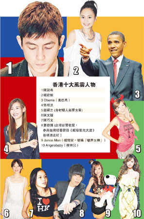 中新網(wǎng)12月10日電 據(jù)香港《明報》報道,年近歲晚,不少新聞媒體都喜歡全年大事回顧,總結(jié)過去一年發(fā)生的事,9日某網(wǎng)絡(luò)搜索器公布的2008年香港熱門關(guān)鍵詞排行榜,總結(jié)2008年網(wǎng)民所關(guān)心的人和事,陳冠希艷照事件的主角占據(jù)了十大風云人物的其中四席。