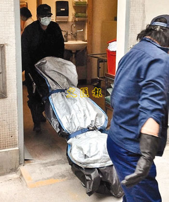 葵涌曉葵樓懷疑畏罪自殺的老翁由仵工送往殮房。(圖片來源:文匯報(bào))