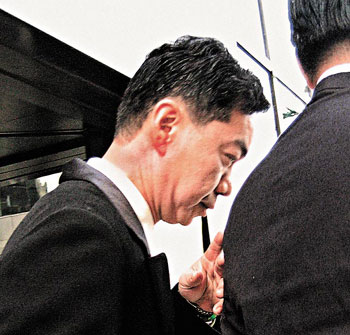 被告30日身穿彩色大格圖案的外套出庭應訊。裁判官得悉他曾因以虛假借口促致他人作非法性行為被判囚,不禁質(zhì)問被告:“你又?”被告反駁稱:“誤會,上次單案我都上到終審庭!辈门泄倭⒓丛儐柹显V結(jié)果,被告低聲道:“駁回。”