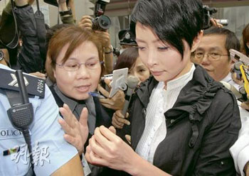 穿上黑色外套及長褲、白色恤衫的湯盈盈(33歲),23日在庭上以英文答辯,全程顯得頗為緊張。她聘用藝人駱應鈞的胞弟、資深大律師駱應淦為代表。