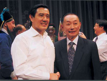 梅葆玖是國民黨在臺恢復(fù)“執(zhí)政”地位后首位赴臺演出的京劇藝術(shù)家,此行主要是為其在臺弟子、“國光劇團”當(dāng)家青衣花旦魏海敏的演出“把場”。6月26日在臺北“城市舞臺”首場演出梅派經(jīng)典名劇《生死恨》,馬英九和夫人伉儷二人安坐座位上,自始至終全神貫注,欣賞了整場的演出。
