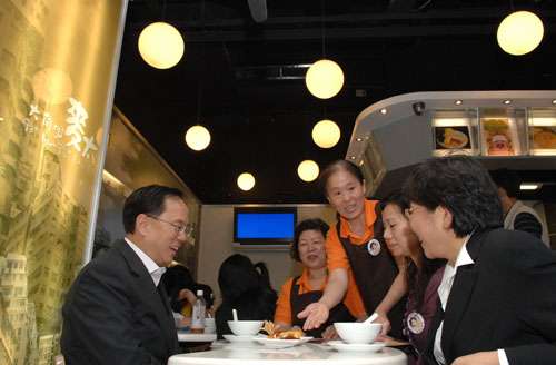 在結(jié)束訪問前,曾蔭權(quán)到訪地鐵奧運(yùn)站一間商場(chǎng)內(nèi)的甜品店,該甜品店是由東華三院賽馬會(huì)大角咀綜合服務(wù)中心營(yíng)運(yùn)的社會(huì)企業(yè),為區(qū)內(nèi)失業(yè)單親中年婦女和低學(xué)歷雙失青年提供就業(yè)機(jī)會(huì)。除了售賣多種甜品外,甜品店亦零售“麥嘜麥兜”產(chǎn)品和提供家居服務(wù)。