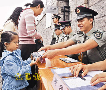 中新網(wǎng)4月28日電 據(jù)香港文匯報報道,五一勞動節(jié)當(dāng)天,市民再次有機(jī)會與解放軍駐港部隊作近距離接觸。解放軍駐港部隊27日晨在添馬艦、石崗及槍會山軍營派發(fā)一共8000張門票,吸引大批市民到場輪候,部分人更在取得門券后再排隊領(lǐng)取。