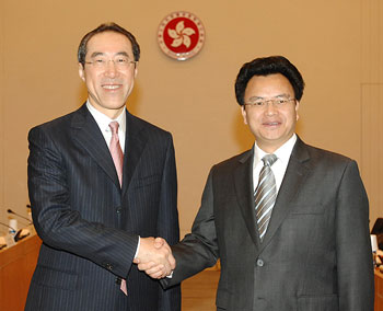 唐英年和廣東省副省長萬慶良,23日在香港共同主持工作會(huì)議。雙方同意,第11次粵港合作聯(lián)席會(huì)議今夏在廣州舉行,而多項(xiàng)作項(xiàng)目及工作計(jì)劃也達(dá)成共識。