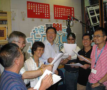 圖:馬時亨(中)客串電臺節(jié)目。(圖片來源:大公報)