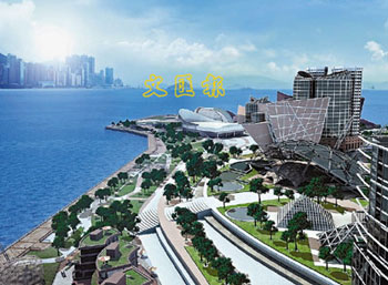 西九文娛藝術(shù)區(qū)計(jì)算機(jī)設(shè)計(jì)圖。(圖片來(lái)源:文匯報(bào))