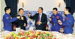 特區(qū)政府傍晚在政府總部設(shè)宴歡迎“神舟七號”載人航天飛行代表團。何厚鏵在晚宴上致辭表示:“祖國航天事業(yè)能夠可持續(xù)地取得精益求精的發(fā)展,除了雄厚的國力、優(yōu)質(zhì)的統(tǒng)籌、杰出的人才,以及科學的探索勇氣之外,更重要的,就是這一事業(yè)的廣大參與者,具有崇高的民族自豪感和無私的報國精神,從而,能夠一步一腳印地,克服一個又一個科技挑戰(zhàn)和心理挑戰(zhàn),一次又一次地和全國人民一起分享成功的果實!