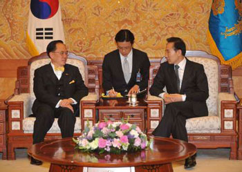 曾蔭權和李明博歡迎兩地建立緊密關系,并就如何進一步拓展彼此的聯(lián)系,進行磋商。