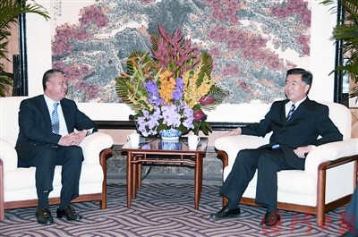 出席會(huì)見的還包括廣東省長(zhǎng)黃華華、副省長(zhǎng)萬(wàn)慶良,澳門經(jīng)濟(jì)財(cái)政司司長(zhǎng)譚伯源,行政長(zhǎng)官辦公室主任何永安等。何厚鏵一行在會(huì)面后出席了汪洋所設(shè)的晚宴。