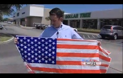 達(dá)拉斯地區(qū)當(dāng)?shù)仉娨暸_(tái)WFAA報(bào)道稱,一名名叫柴德瑞斯(Tim Childress)的消費(fèi)者日前到一元商店“Dollar Tree”達(dá)拉斯地區(qū)一家分店購(gòu)買塑料材質(zhì)的大幅美國(guó)國(guó)旗,回家才發(fā)現(xiàn)這幅美國(guó)國(guó)旗上面竟然有61顆星星,比標(biāo)準(zhǔn)版美國(guó)國(guó)旗多出11顆。