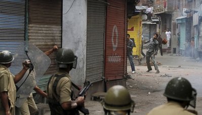 29日,在印控克什米爾地區(qū)安南塔那加(Anantnag),數(shù)千名示威者上街抗議,向安全部隊(duì)人員扔擲石塊,用棍棒襲擊警察,警方則發(fā)射催淚瓦斯回?fù),并被迫開火,打死3名平民示威者。