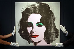 那幅畫是安迪•沃霍爾1963年的作品,那一年,伊麗莎白泰勒成為第一個(gè)片酬突破百萬美元的女星,畫作被私人收藏,20年來都沒有公開展示過,F(xiàn)在,它在倫敦以676萬英鎊、相當(dāng)于一千一十萬美元拍賣。