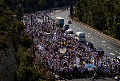 昨天參加活動的人數(shù)達到12天來,在以色列全境舉行的釋放沙利特的請愿活動的最高點。