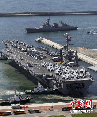 中新網(wǎng)7月21日電 據(jù)韓聯(lián)社報(bào)道,美國海軍第7艦隊(duì)的航空母艦“喬治·華盛頓”號(hào)21日抵達(dá)釜山港,準(zhǔn)備參加從25日開始的韓美聯(lián)合軍演。