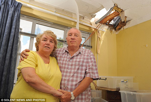 據(jù)稱,66歲的文斯•福特與妻子布倫達(dá)在半夜聽到一聲巨響,一開始以為是打雷,后來當(dāng)福特打開另一間臥室的時候,他被天花板的窟窿和滿屋的狼籍驚呆了,窟窿下方正對著一張床上,幸好經(jīng)常來住的孫子不在,否則后果不堪設(shè)想。