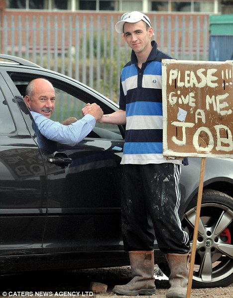 中新網(wǎng)7月26日電 據(jù)英國(guó)媒體26日?qǐng)?bào)道,23歲的英國(guó)青年馬克•威爾頓近日舉著一塊自制的木牌,站在英國(guó)最繁華的特倫特河畔斯多克市為自己做起廣告。牌子上寫(xiě)著“請(qǐng)給我份工作”。