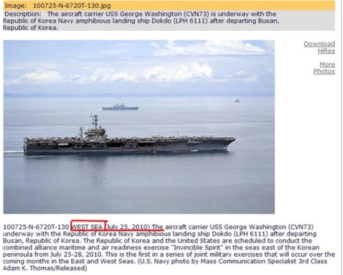 記者于7月28日再次登錄美國海軍官方網站,發(fā)現之前被標為拍攝于“西海”(中國稱“黃!)并在7月27日被刪除的照片,已經再度被上傳到網站上,而其標注的地點已經被更正為“日本!。