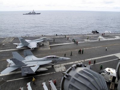 據(jù)信,美國核動力航母“喬治•華盛頓”號將會與一艘導彈驅逐艦和獵雷艦在越南港口城市峴港會合。