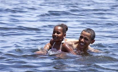 不過白宮官方網站幾個小時后還是主動發(fā)布了一張奧巴馬父女戲水的照片,相比2008年在夏威夷被拍到令人“印象深刻”的胸肌和腹肌,這次奧巴馬很低調,他笑容燦爛,只在海水中露出半邊性感的肩膀。