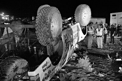 前晚約7時40分,位于洛杉磯東北約165公里沙漠地區(qū)的“加州200荒漠越野車比賽”開始不久,位于前列位置的Prerunner四驅(qū)車駛到距起點(diǎn)約3.2公里的跳臺時出事。