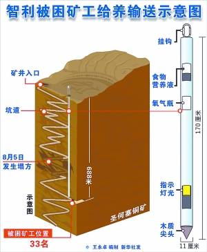 智利圣何塞銅礦本月5日發(fā)生塌方,救援人員22日發(fā)現(xiàn)33名被困礦工的位置,在此之前他們依靠少量食物頑強(qiáng)堅(jiān)持了17天。智利政府目前正全力展開救援工作,然而,技術(shù)上的困難導(dǎo)致可能要花4個(gè)月時(shí)間才能救出全部礦工。當(dāng)局絞盡腦汁激勵(lì)他們的求生意志,運(yùn)送抗抑郁藥物、娛樂設(shè)施等供其打發(fā)時(shí)間,還指導(dǎo)他們挖廁所預(yù)防疾病、鍛煉身體便于以后逃生等。