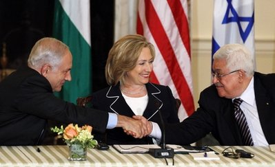 在美國(guó)國(guó)務(wù)卿希拉里的主持下,巴勒斯坦領(lǐng)導(dǎo)人阿巴斯和以色列總理內(nèi)塔尼亞胡自2008年年底后第一次坐在同一張談判桌前,著手就以色列定居點(diǎn)、耶路撒冷歸屬等最終地位問(wèn)題展開(kāi)直接談判,以結(jié)束雙方數(shù)十年的沖突并實(shí)現(xiàn)“兩國(guó)方案”。