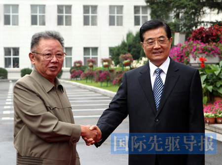 “8月27日,中共中央總書記、國家主席胡錦濤在長春同朝鮮勞動(dòng)黨總書記、國防委員會(huì)委員長金正日舉行會(huì)談。金正日8月26日至30日對(duì)中國進(jìn)行非正式訪問!30日下午6點(diǎn)57分,新華社播發(fā)的這則快訊,讓連日來外媒的一些猜測變?yōu)楝F(xiàn)實(shí)。等金正日平安回到朝鮮境內(nèi),再“補(bǔ)發(fā)”出訪消息,一直是中朝外交的慣例。