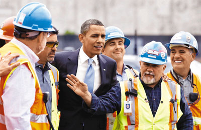 9月的第一個(gè)星期一也是美國(guó)勞動(dòng)節(jié),奧巴馬在紀(jì)念活動(dòng)上發(fā)表講話說(shuō),未來(lái)六年美國(guó)將重修15萬(wàn)英里的公路,“相當(dāng)于繞地球六圈”。同時(shí)還將新建和維護(hù)4000英里的鐵路,“相當(dāng)于美國(guó)東西海岸間的距離”。