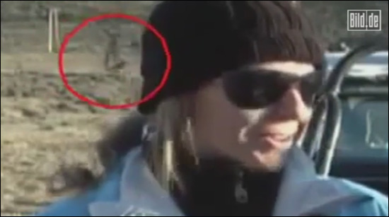 這段視頻的拍攝地點位于阿根廷的圣克魯斯省,一個以經(jīng)常出現(xiàn)UFO和外星人而出名的地區(qū)。鏡頭前,一個戴著帽子和墨鏡的美女正在對著麥克風(fēng)接受采訪。突然,鏡頭的背景中出現(xiàn)一個古怪的身影,并緩緩地從鏡頭中走過。