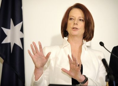 今年6月,時(shí)任總理陸克文因推行超額資源稅等政策引起業(yè)界不滿,執(zhí)政黨工黨的支持率下降,6月24日在工黨黨內(nèi)選舉中吉拉德當(dāng)選黨首,取代陸克文出任總理,并宣誓就職。
