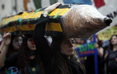 示威隊伍從國會一路游行到總統(tǒng)府。他們抗議長期以來公共教育經(jīng)費遭刪減,導(dǎo)致學校學習環(huán)境惡劣,不僅冬天沒有暖氣、電力系統(tǒng)老舊,而且天花板漏水、窗戶玻璃破了也都沒有更新,問題一籮筐。