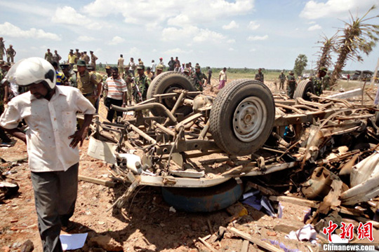 中新網(wǎng)9月17日電 據(jù)美國媒體報(bào)道,17日,斯里蘭卡軍方發(fā)言人說,該國東部一處警察局附近的彈藥庫發(fā)生意外爆炸,爆炸導(dǎo)致至少60人死亡,其中包括兩名中國人。中國駐斯里蘭卡使館已經(jīng)確認(rèn)有兩名中國人在爆炸中死亡。