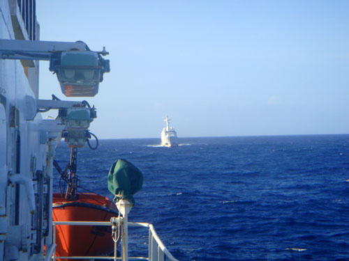據(jù)“中國漁政202”船政委孫士薦介紹,9月7日晚間,正在滬浙沿海執(zhí)行東海專屬經(jīng)濟區(qū)巡航任務(wù)的202船奉命調(diào)整航線,駛往釣魚島海域保護在那里作業(yè)的我國漁船和漁民的人身、財產(chǎn)安全。船長沈長嶺告訴《環(huán)球時報》記者,9月9日深夜,202船在抵近釣魚島諸島途中,又得到隨時準(zhǔn)備接應(yīng)被日本非法抓扣的“閩晉漁5179”漁船返航的指示。