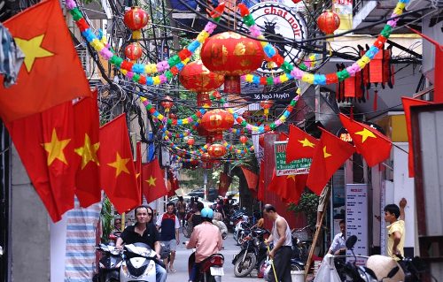 據(jù)法新社消息,越南首都河內(nèi)將于10月1日迎來建城1000周年大慶,屆時,河內(nèi)將連續(xù)10天舉行各項慶;顒。目前河內(nèi)的大街小巷掛滿了嶄新的國旗和各式各樣的燈籠,到處喜氣洋洋。