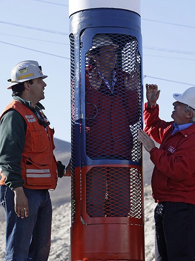 中新網(wǎng)10月19日電 據(jù)臺(tái)灣“聯(lián)合新聞網(wǎng)”19日?qǐng)?bào)道,智利政府成功救出33名礦工后,智利總統(tǒng)皮涅拉不僅在國(guó)內(nèi)支持度飆高,國(guó)際地位也不可同日而語。在訪問英國(guó)時(shí),皮涅拉把礦工從地底下帶上來的礦石贈(zèng)送給英國(guó)女王和首相,并計(jì)劃將此次零死亡奇跡援救的救生艙“鳳凰號(hào)”的一具模型,送往上海世博會(huì)展出。