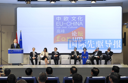 這是10月6日舉行的首屆中歐文化高峰論壇現(xiàn)場。為期兩天的論壇由中國文化部、歐盟委員會(huì)對(duì)外關(guān)系總司和教育文化總司共同主辦。開幕式當(dāng)天,和歐盟委員會(huì)主席巴羅佐一起出席論壇的中國總理溫家寶意味深長地發(fā)表演講說:“文化交流比政治交流更久遠(yuǎn),比經(jīng)濟(jì)交流更深刻!