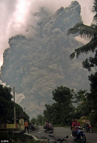 26日黃昏,默拉皮火山噴發(fā),在短短半小時之內(nèi),有過3次猛烈的噴射,火山口上形成了濃重的熱云和熱浪。印尼政府此前已經(jīng)撤退了大約1.4萬名住在附近的村民,不過依然有很多村民守著他們的家產(chǎn)不愿離開。